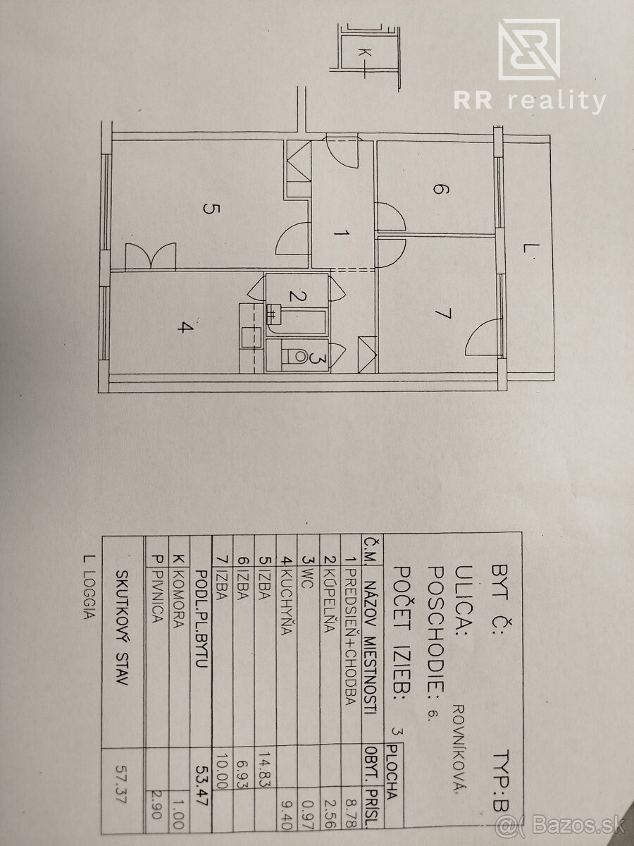 Ing. Katarína Čomová, Phd. a RR reality ponúka na predaj 3-izbový byt na Rovníkovej ulici v mestskej časti Nad Jazerom v Košiciach.